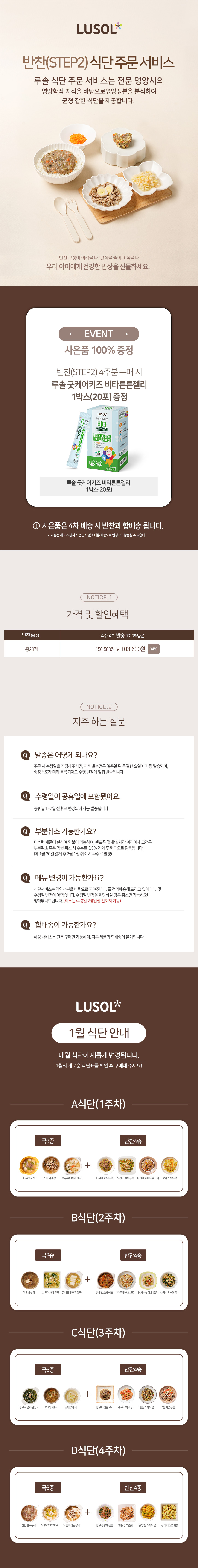 루솔 입니다.항상 루솔을 이용해 주시는 고객님들께 감사 드립니다.루솔 오프라인 박람회와 매장에서 구매 가능한, 이유식 이용권 계약 내용이 2026년 1월 1일 계약 부터 변경 되어 안내 드립니다.변경 내용