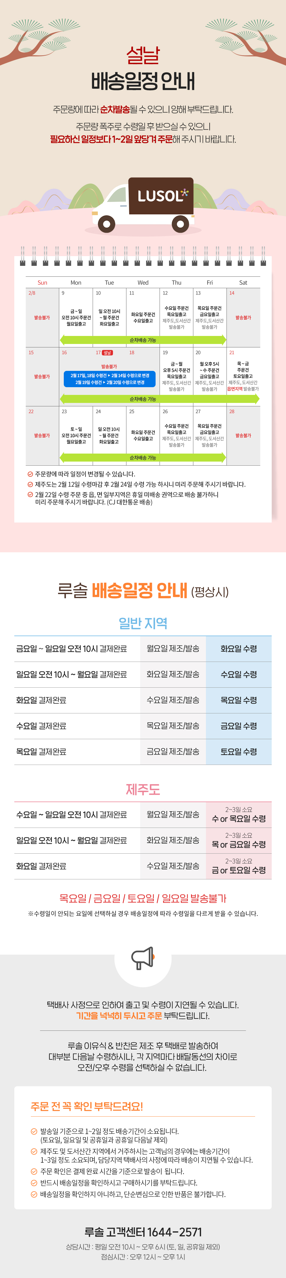 [공지] 2월 설날 배송일정